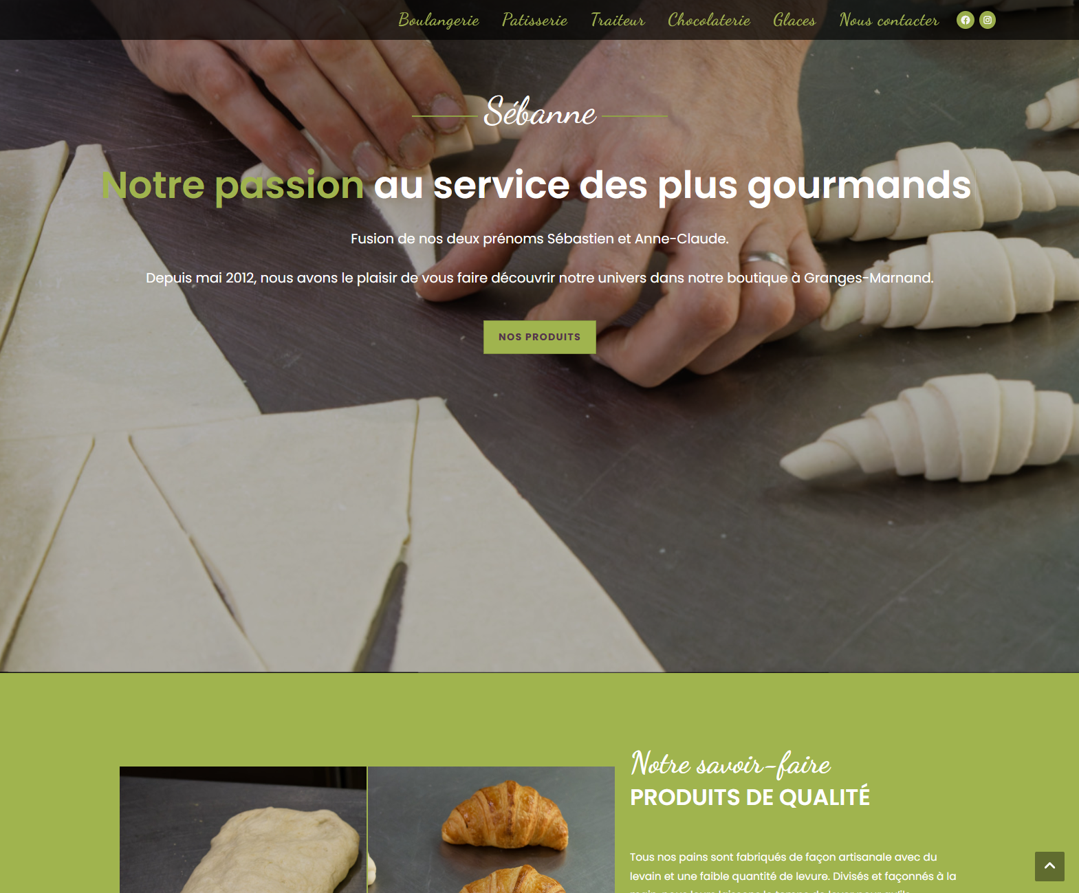 Site vitrine d'une boulangerie pâtisserie, développée avec WordPress & Elementor